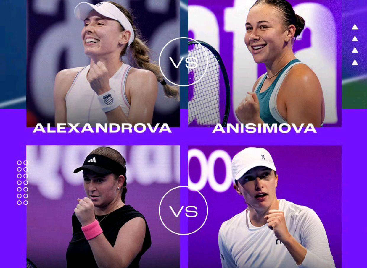 2025年WTA1000多哈站的单打1/4决赛已经结束,产生了四位半决赛选手:世界排名第一的波兰选手斯瓦泰克、曾获大满贯冠军的奥斯塔彭科、俄罗斯老将亚历山德洛娃以及美国新星阿尼西莫娃。